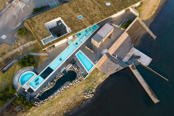 Laugarvatn Fontana is a geothermal spa located on the shores of Lake Laugarvatn. It features a series of interconnected outdoor mineral baths and steam rooms naturally heated by the geothermal springs below. The spa also has a traditional Finnish-style sauna and offers the unique experience of taking a dip in the cold lake.